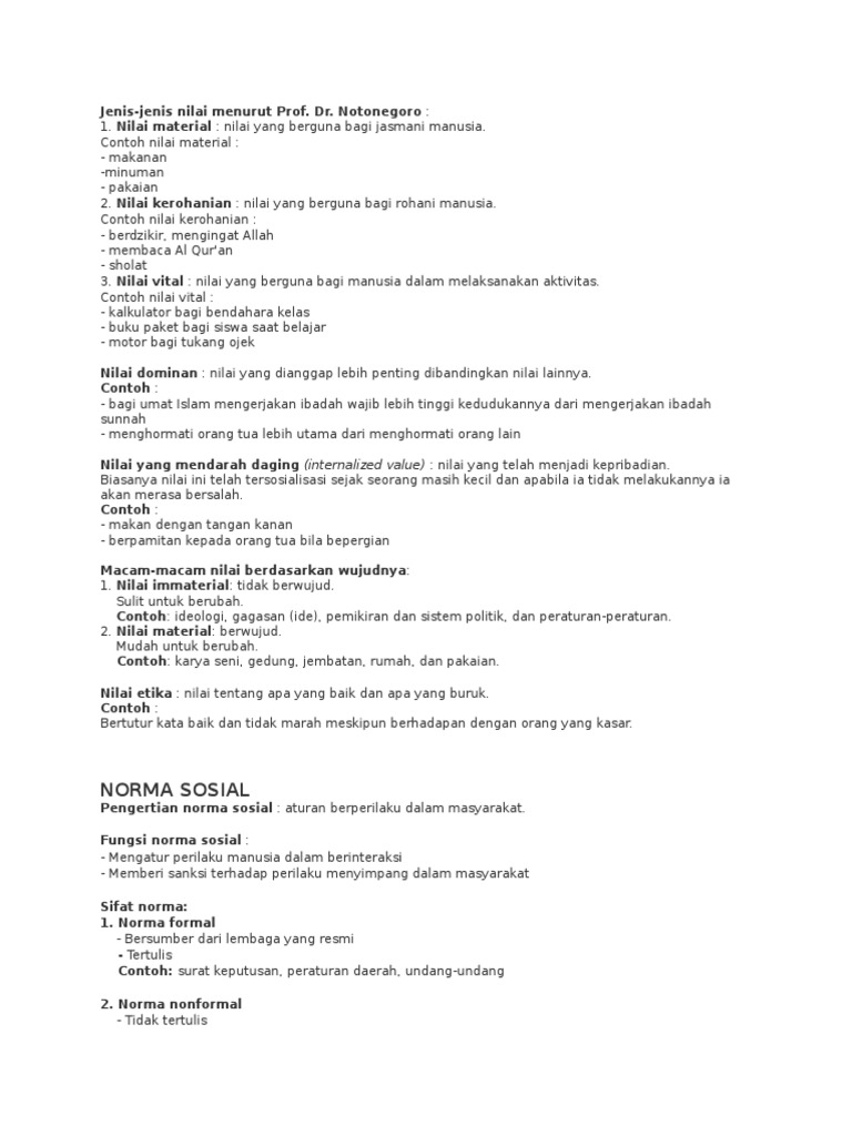 Macam Macam Nilai Sosial Menurut Prof Dr Notonegoro Dan Walter G