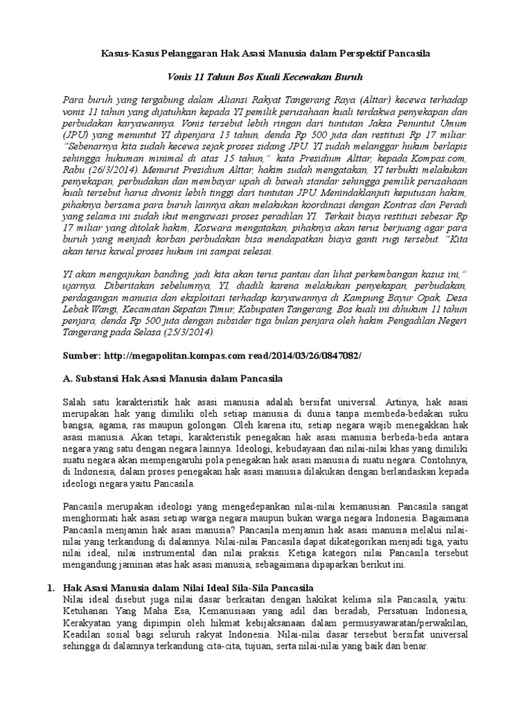 Kasus Kasus Pelanggarahan Ham Dalam Perspektif Pancasila