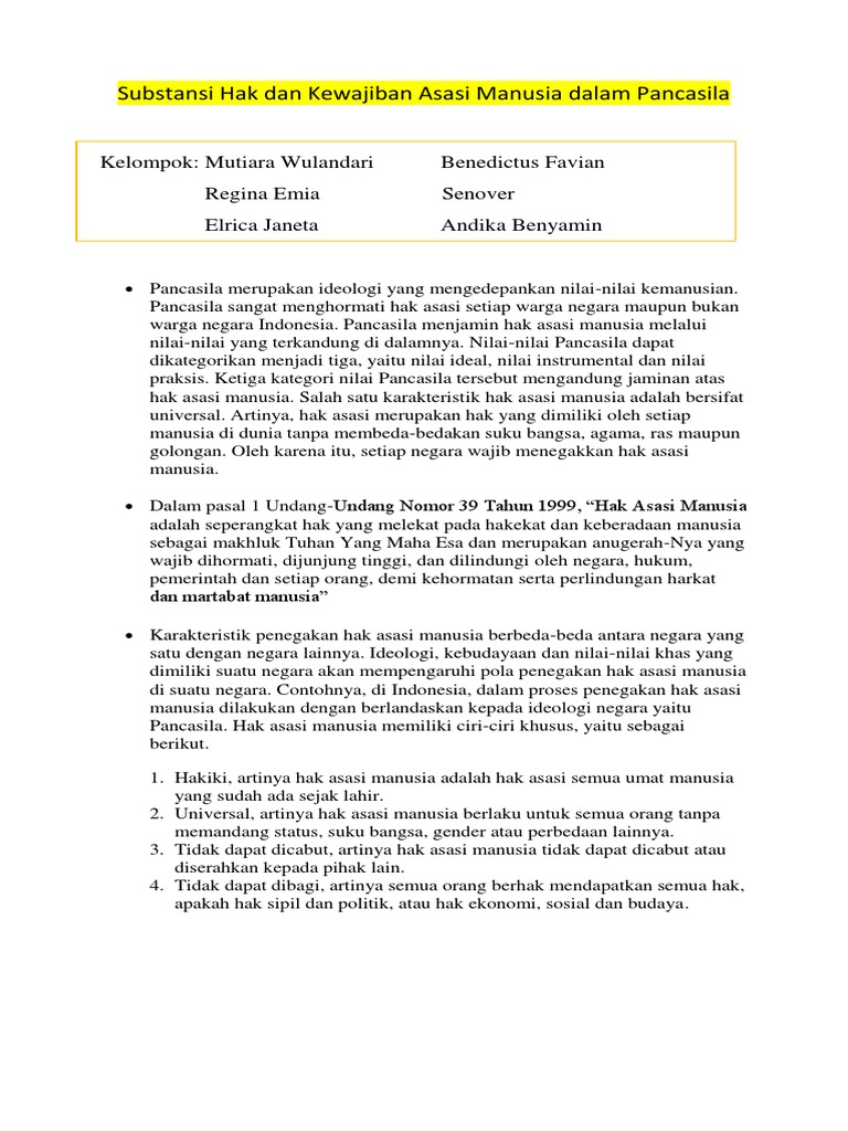 Substansi Hak Dan Kewajiban Asasi Manusia Dalam Pancasila Your