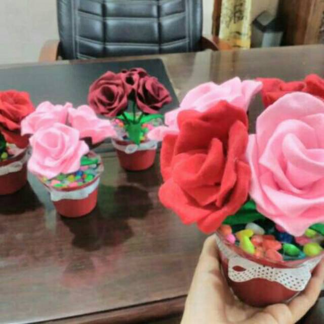 Jual Pot Bunga Mawar Hiasan Meja Flanel Mawar Kota Madiun