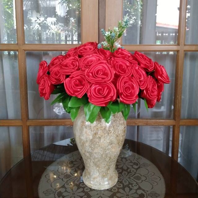 Mawar Merah Pita Satin Ukuran 4cm Bunga Meja Bunga Hias Shopee Indonesia