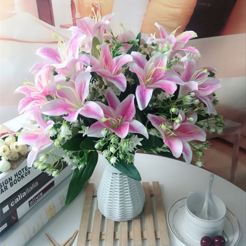 Artificial Bunga Bunga Buatan Naik Lily Set Bunga Hidup Dekorasi