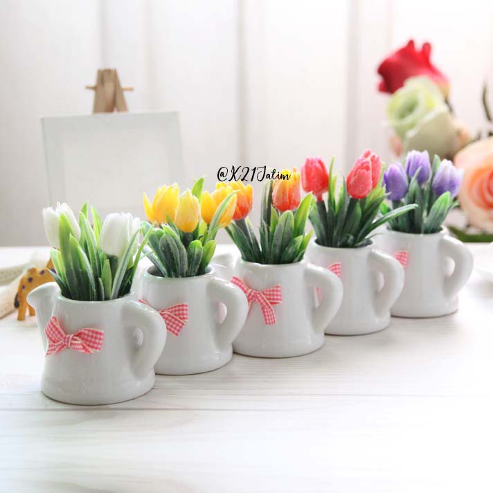 Vbk02 Bunga Tulip Plastik Vas Gembor Air Kecil Keramik Pajangan