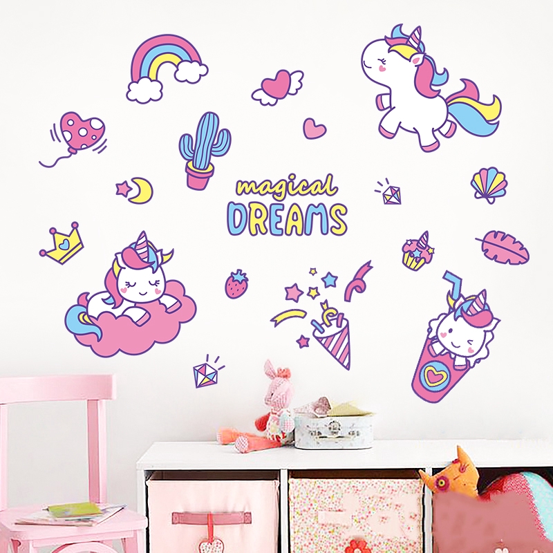 Terbaik Khm293 Stiker Dinding Desain Unicorn Hiasan Dinding