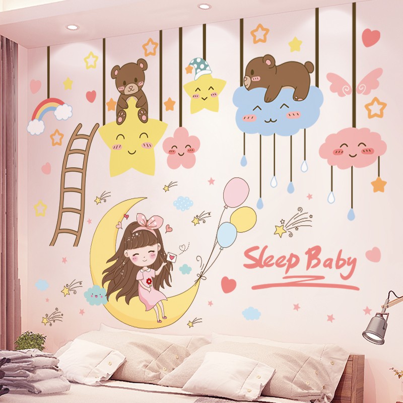 Kartun Stiker Dinding Lucu Stiker Kamar Gadis Tata Letak Samping