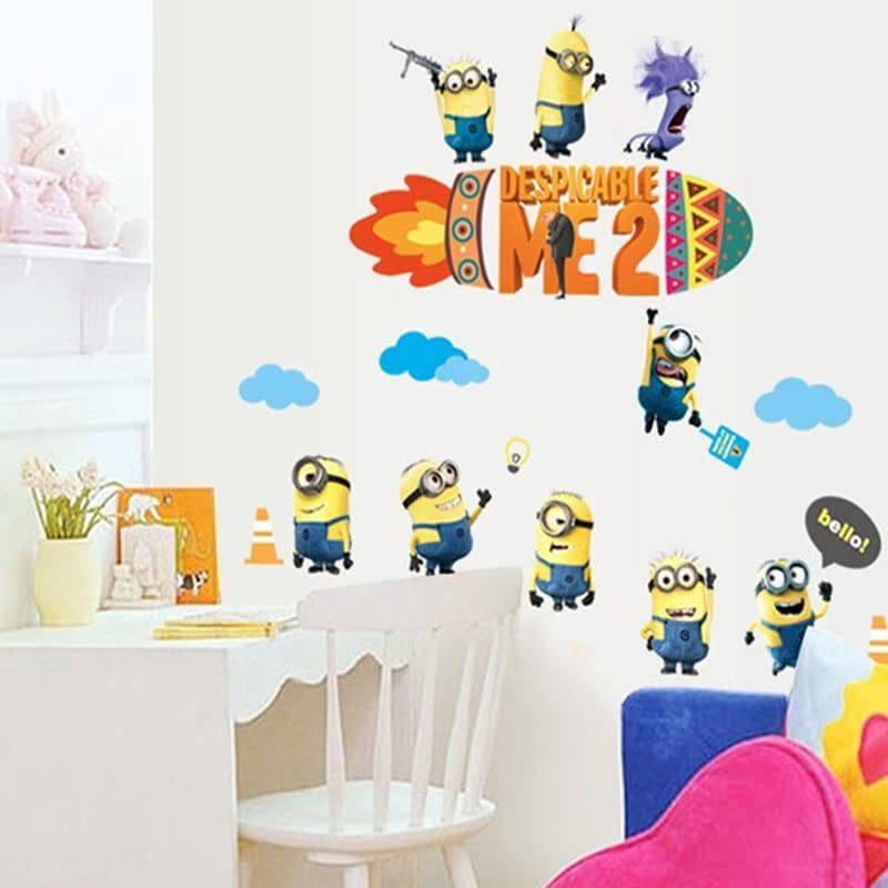 Kartun Minion Dinding Seni Stiker Untuk Dekorasi Rumah Anak Anak