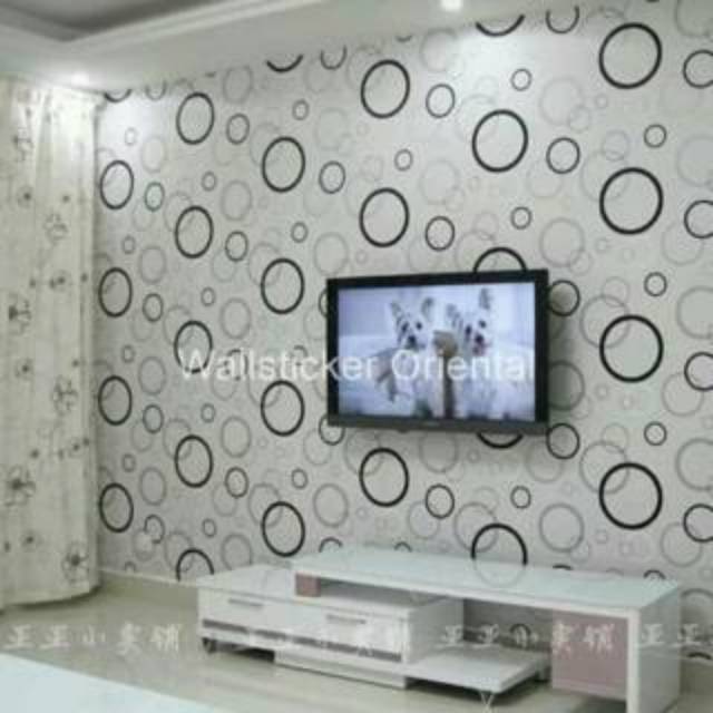 Wallpaper Sticker Dinding Motif Bulat Hitam Putih Ukuran 45cm X