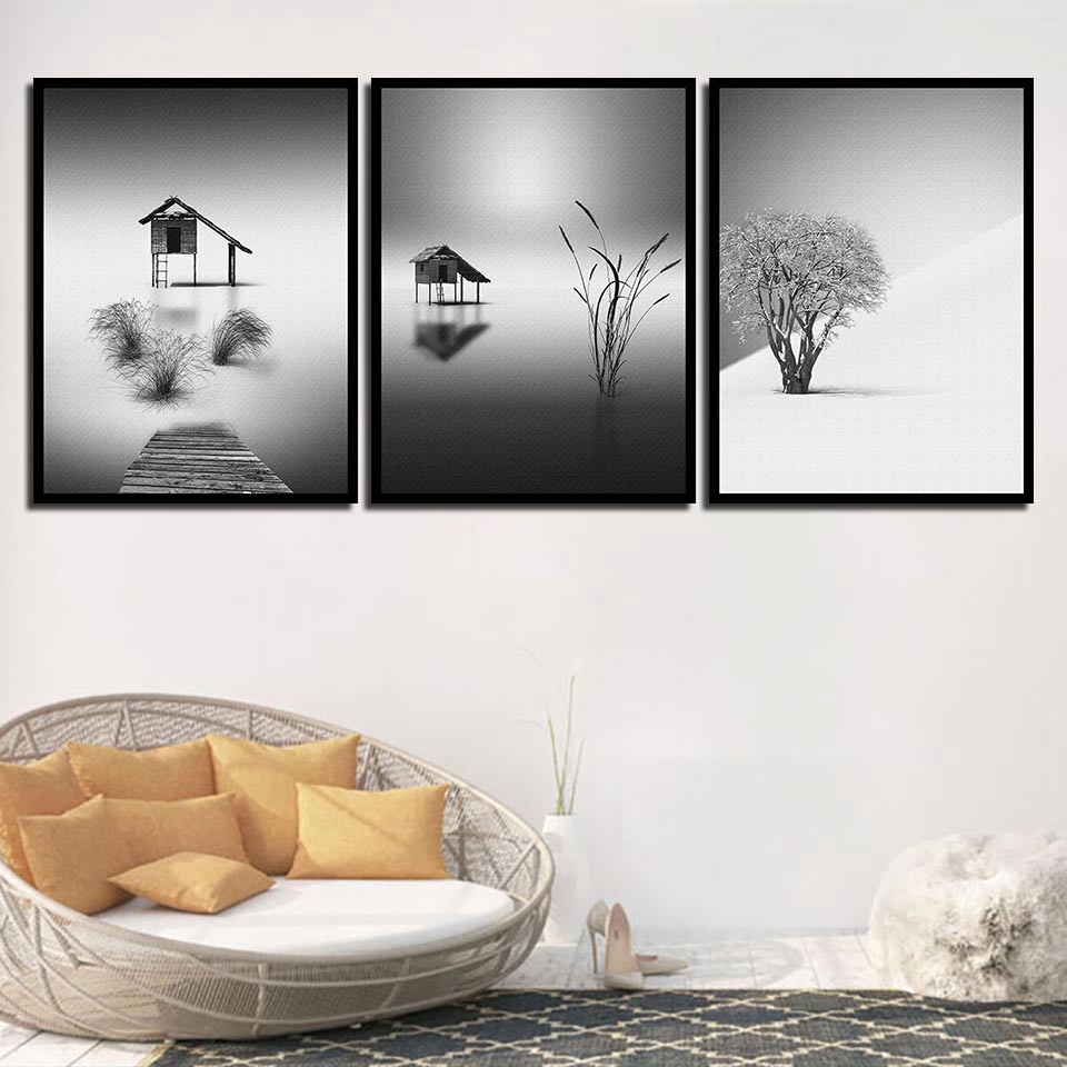 Poster Dinding Motif Print Pemandangan Warna Hitam Putih Gaya