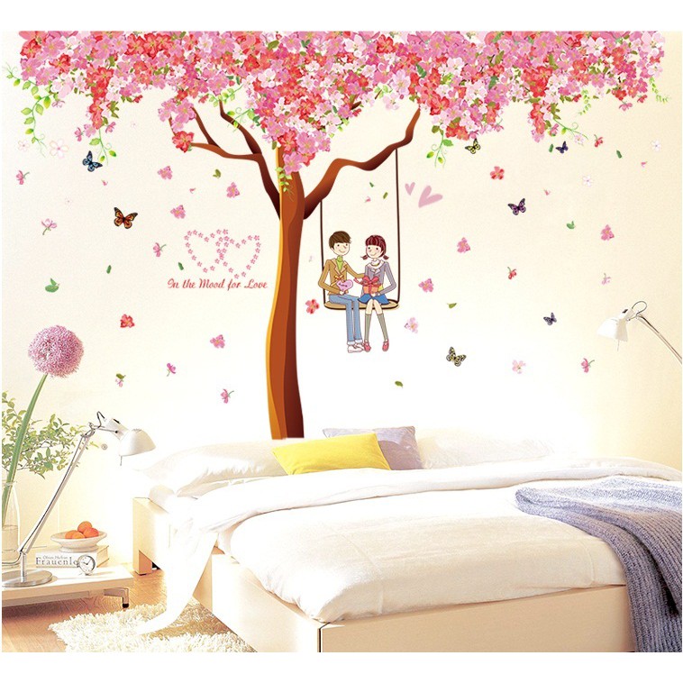 Kartun Pecinta Romantis Bunga Sakura Stiker Dinding Dekorasi Baru