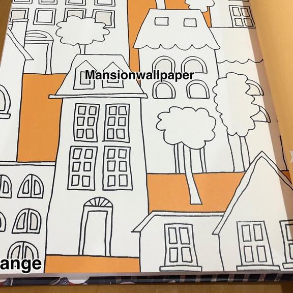 Pq F031 Wallpaper Dinding Anak Murah Gambar Rumah Kartun Orange