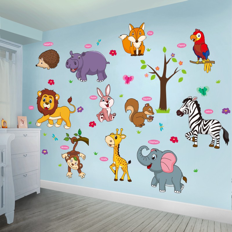 Kartun Stiker Hewan Kamar Anak Anak Tk Stiker Dinding Lukisan