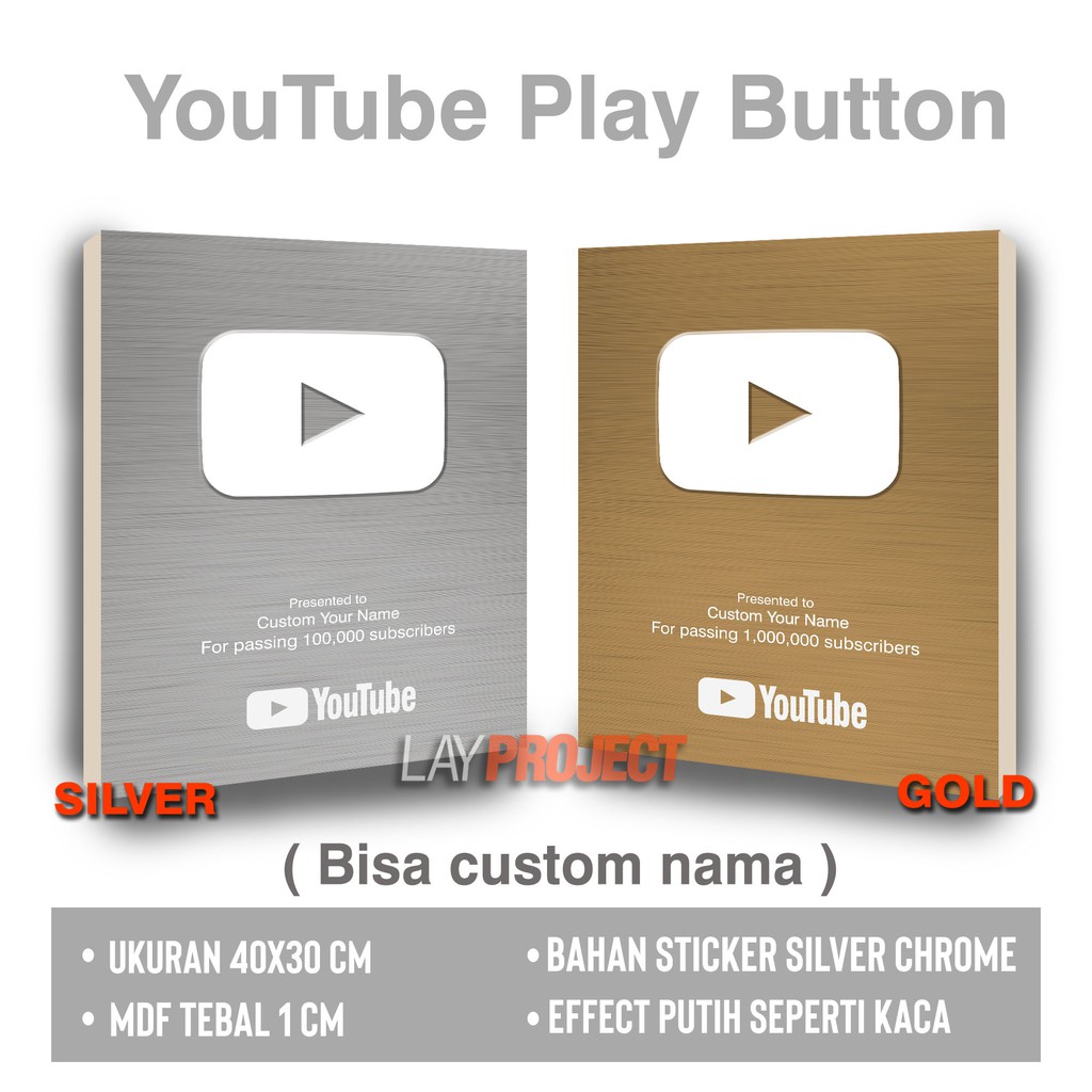 Jual Wall Decor Hiasan Dinding Youtube Play Button Silver Gold