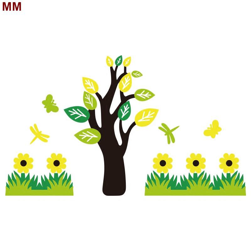 M Kartun Pohon Hijau Rumput 3d Stiker Dinding Padat Lukisan Kelas