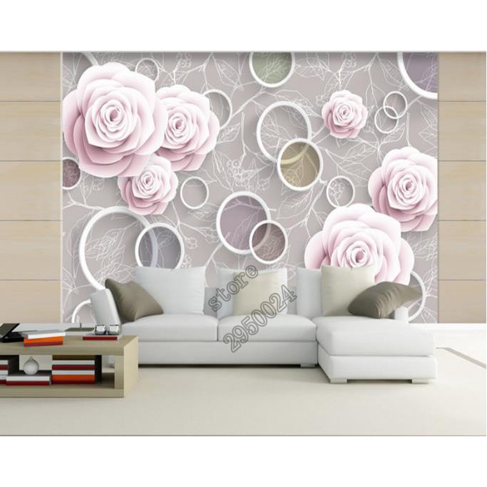 Wallpaper 3d Foto Lukisan Lingkaran Putih Pink Rose Mural Dinding
