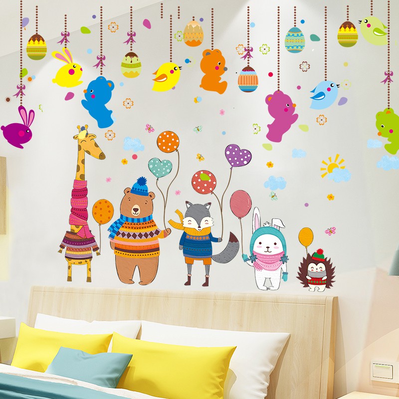 Kartun Lucu Hewan Stiker Dinding Kamar Anak Anak Tk Kamar Latar