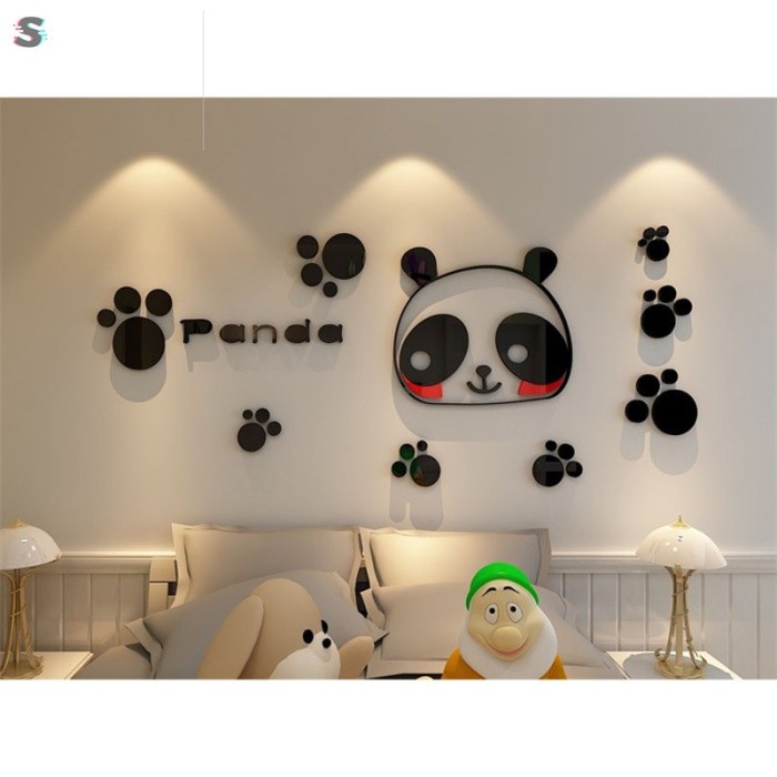 Jual Stiker Dinding Decal Desain Kartun Panda 3d Bahan Akrilik