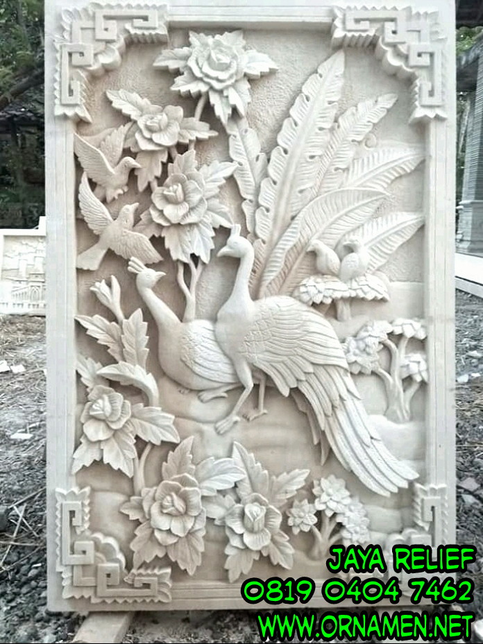 Relief Burung Merak Kerajinan Batu Alam Batu Putih Batu Paras