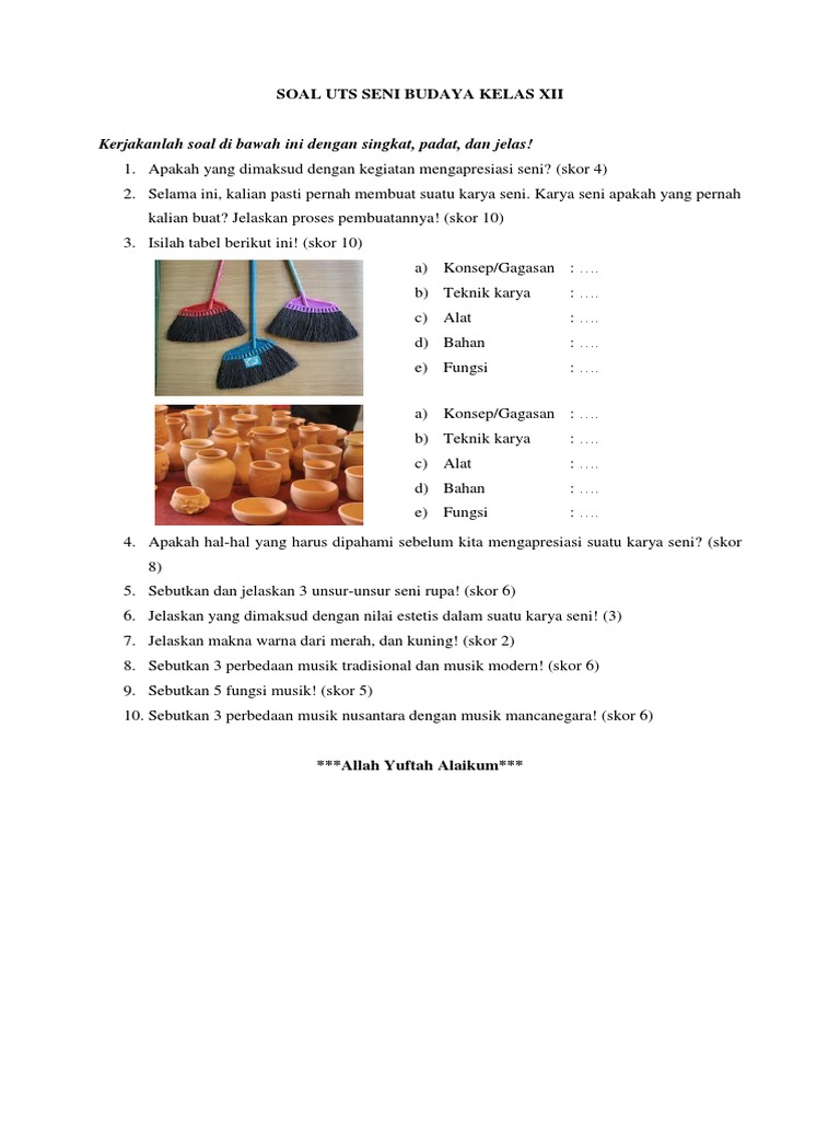 Soal Uts Seni Budaya Kelas Xii