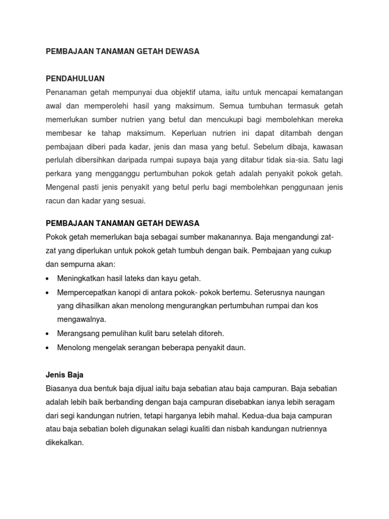 Jenis Baja Pokok Getah