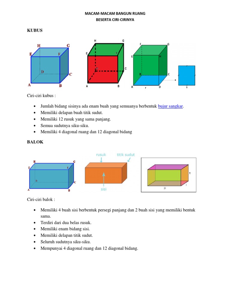 Jenis Bangun Ruang Dan Ciri Cirinya