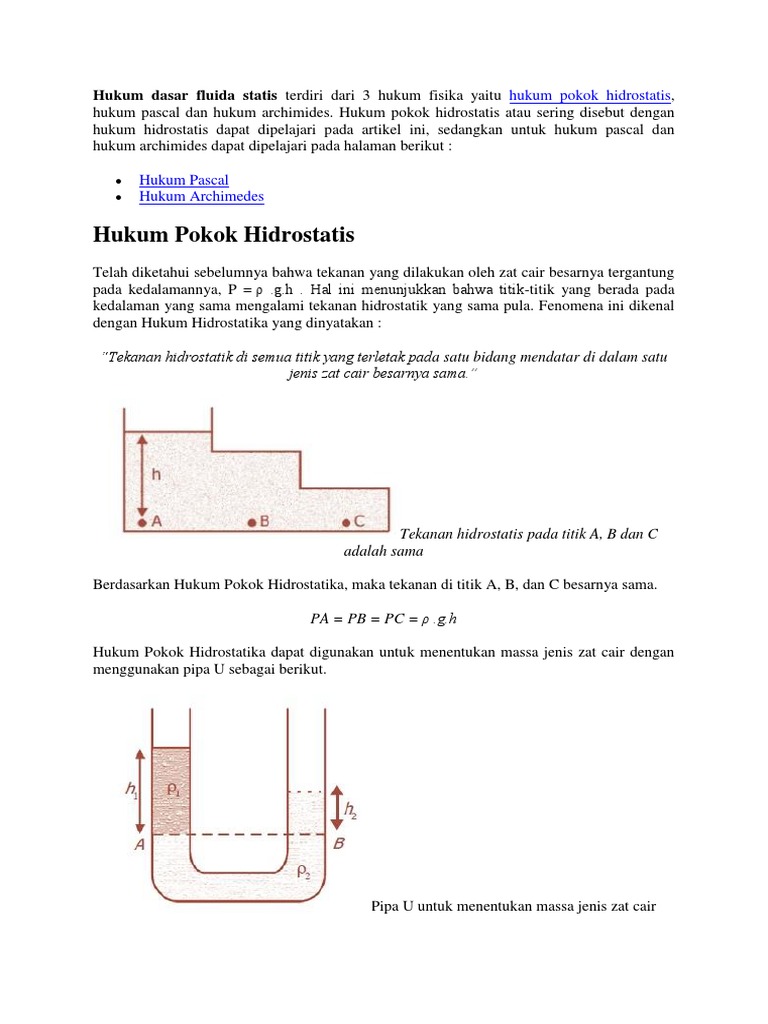 Hukum Dasar Fluida Statis Terdiri Dari 3 Hukum Fisika Yaitu Hukum