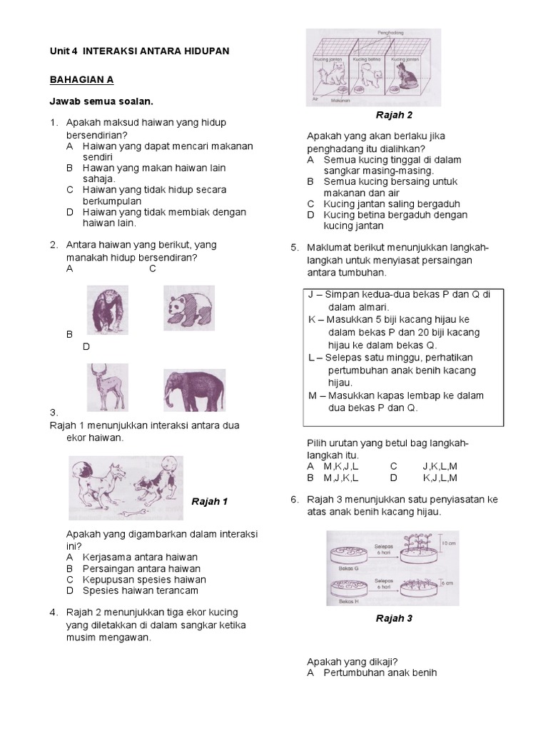 Kuiz Sains Tahun 6 2020 Interaksi Haiwan Quiz Quizizz