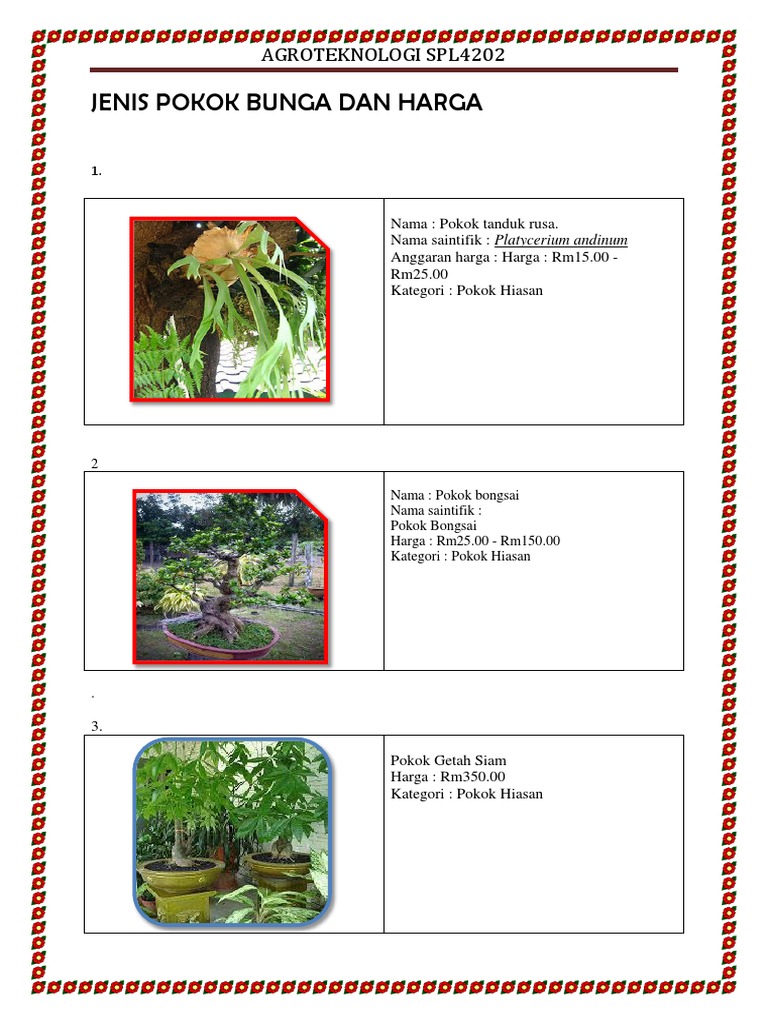 Jenis Pokok Dan Nama Saintifik