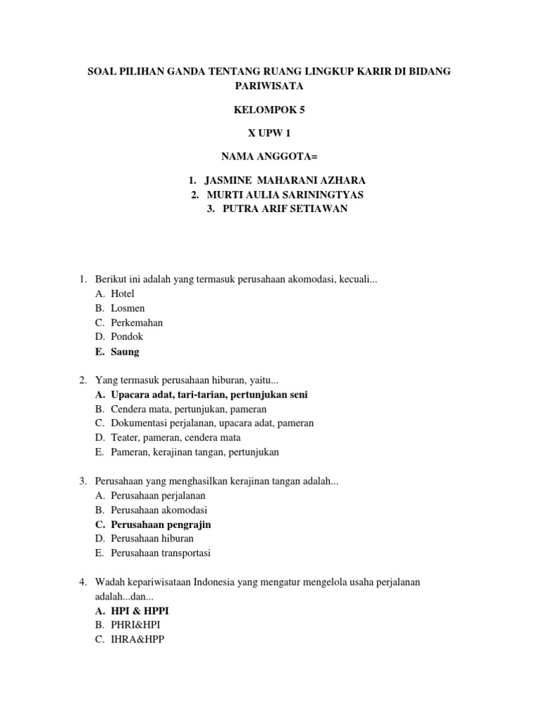 Kepariwisataan Kelompok 5 Ruang Lingkup Karir Di Bidang Pariwisata