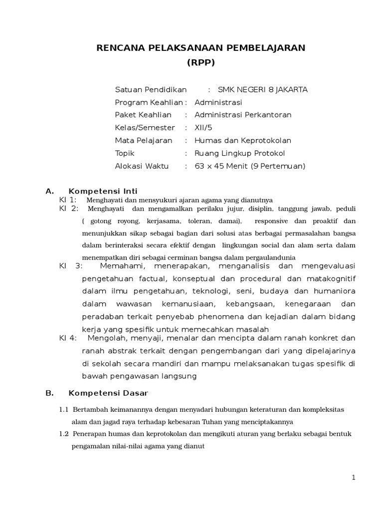 Rpp Keprotokolan