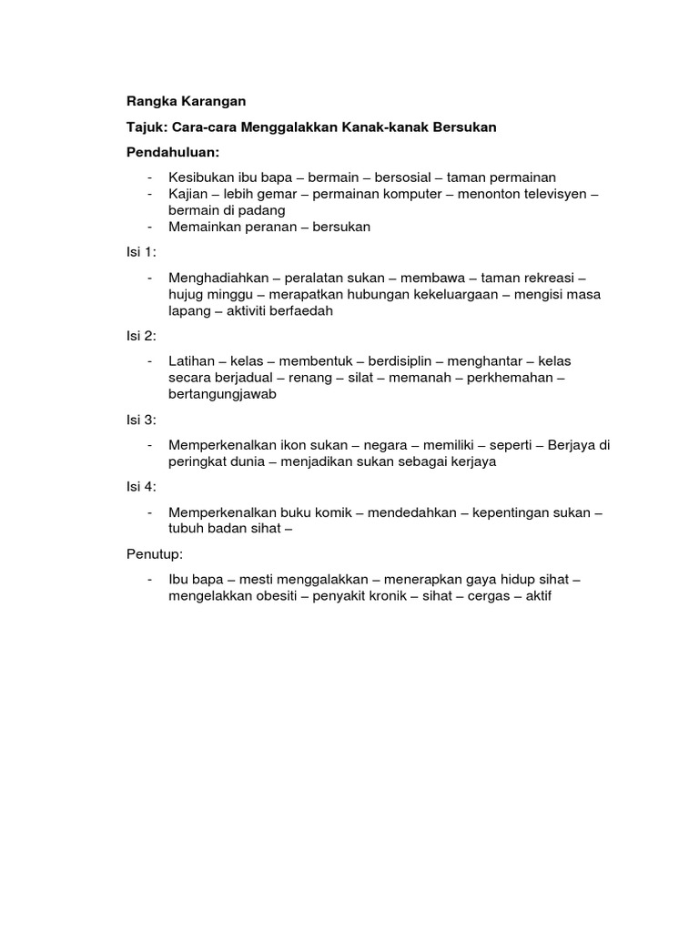 Rangka Karangan Cara Cara Menggalakkan Kanak Kanak Bersukan Docx