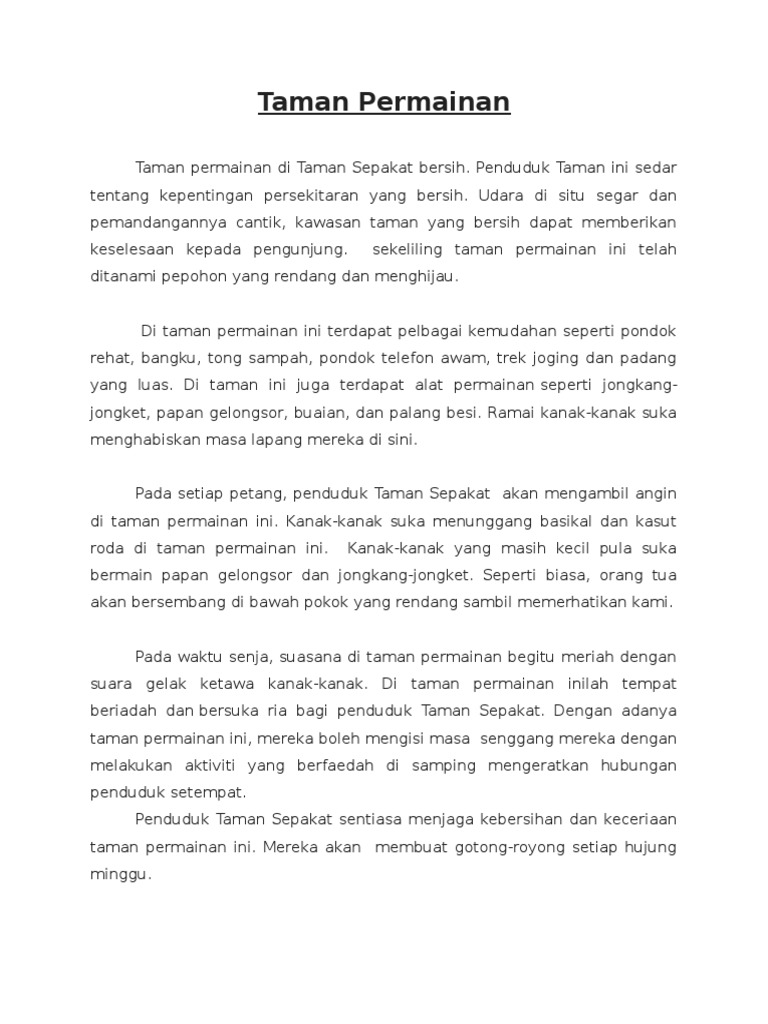 Contoh Karangan Sekolah Rendah Aku Sebuah Taman Permainan