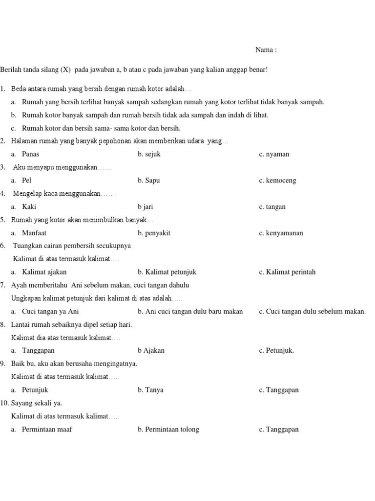 Tanggapan Atas Petunjuk Pada Soal Diatas Brainly Co Id