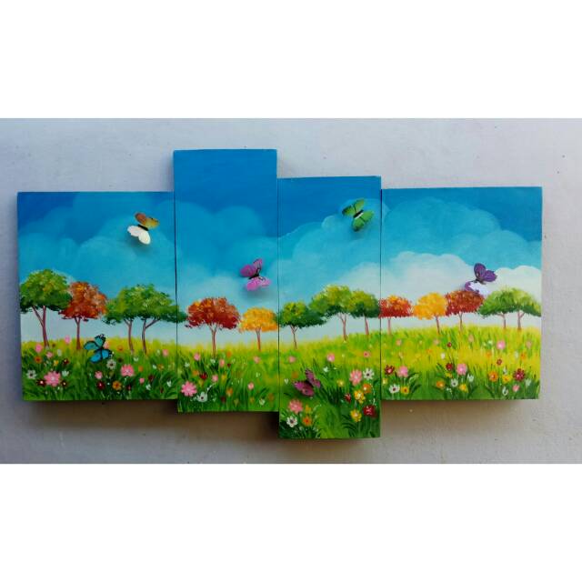 Lukisan Panel Pemandangan Taman Dan Kupu Kupu 3d Shopee Indonesia