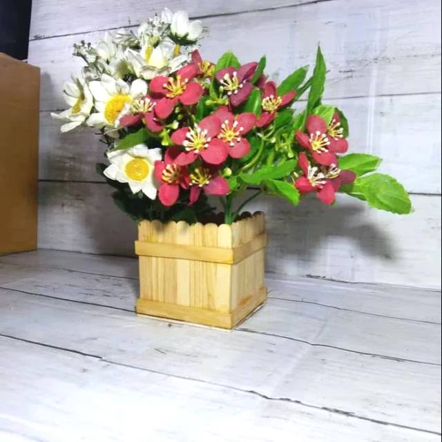 Vas Bunga Kayu Hiasan Meja Pot Bunga Vintage Rustic Shopee Indonesia