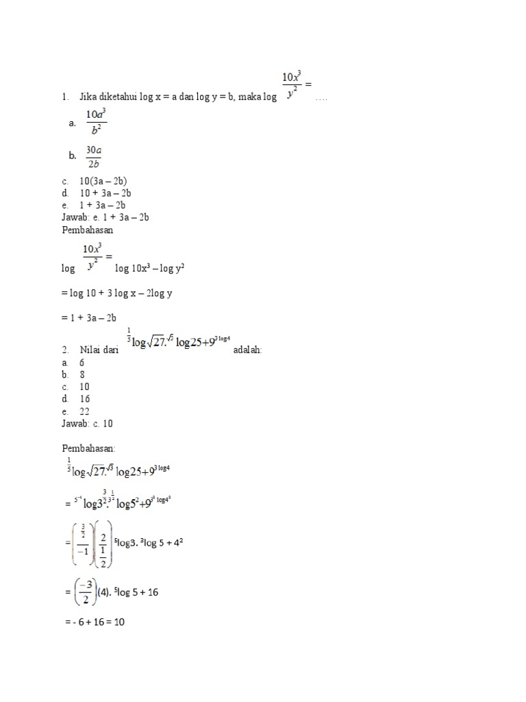 Doc Pembahasan Logaritma Kelas X Mardan Musno Academia Edu