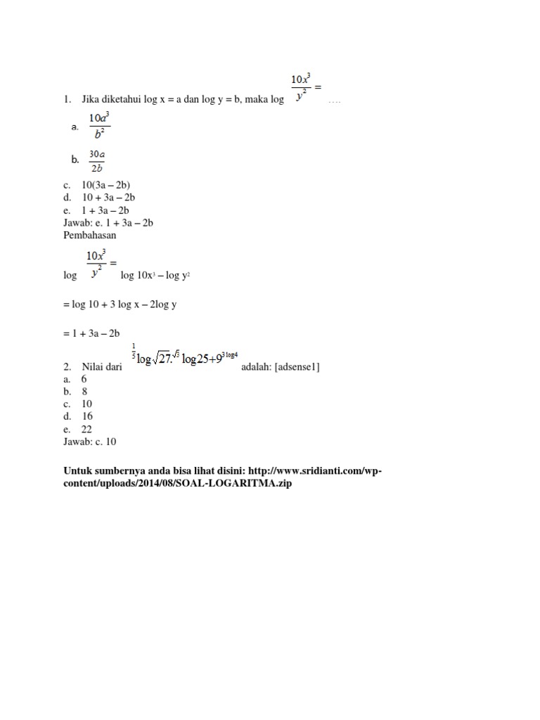 Doc Jawaban Soal Logaritma Donik Ariyanto Academia Edu