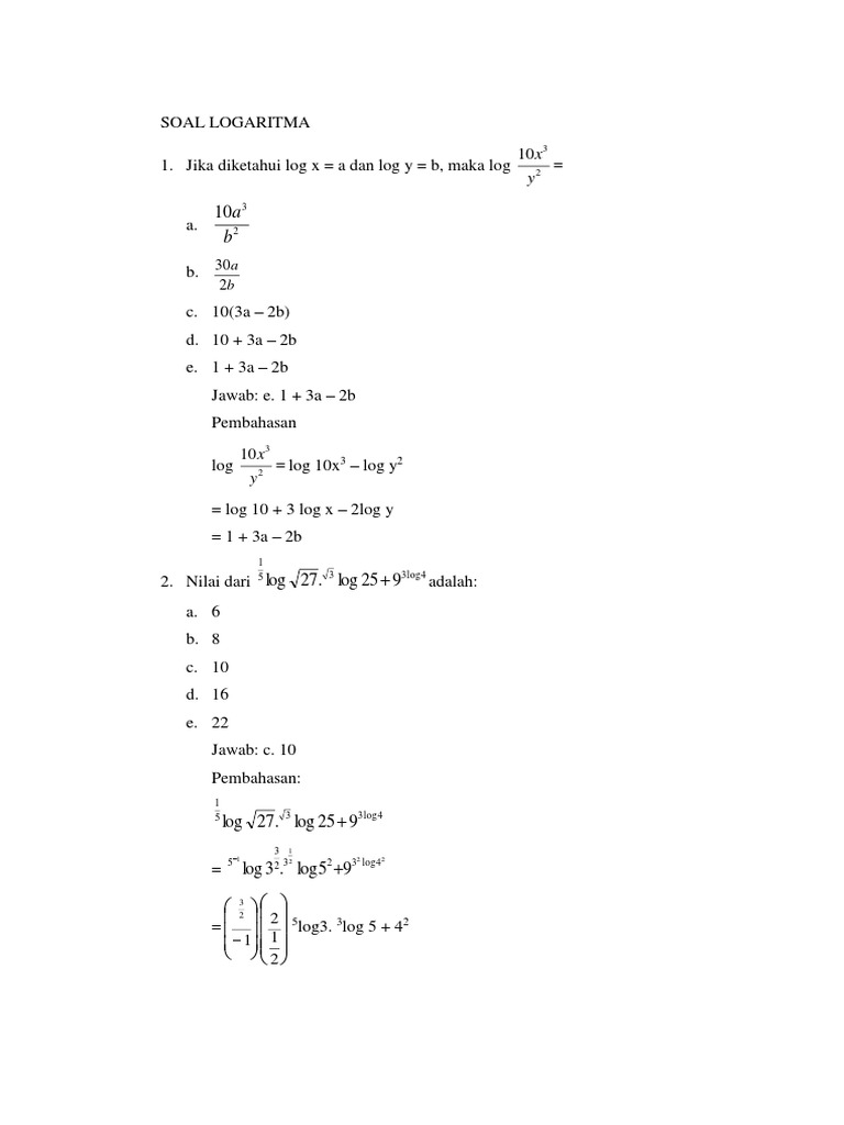 Soal Dan Pembahasan Matematika Logaritma 1 6 Istana Mengajar