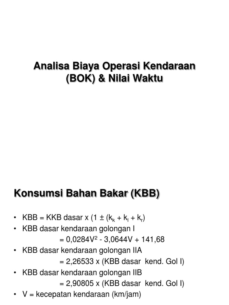 Analisa Biaya Operasi Kendaraan Bok Nilai Waktu