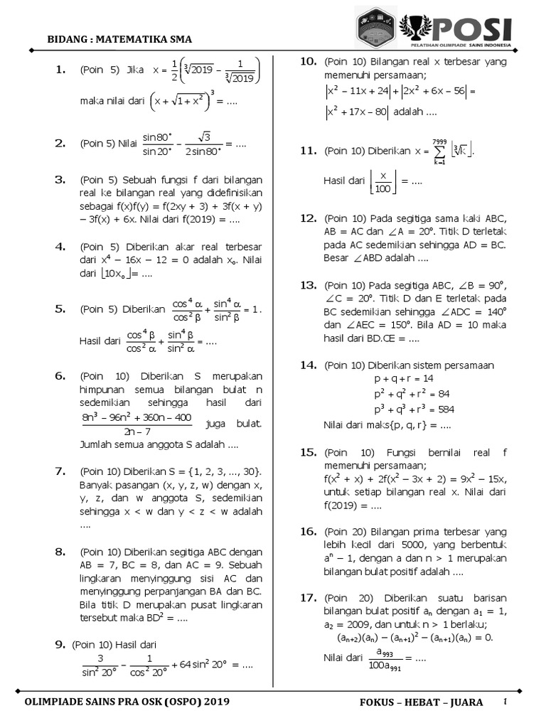 Ospo 2019 Soal Sma Matematika Www Catatanmatematika Com Pdf
