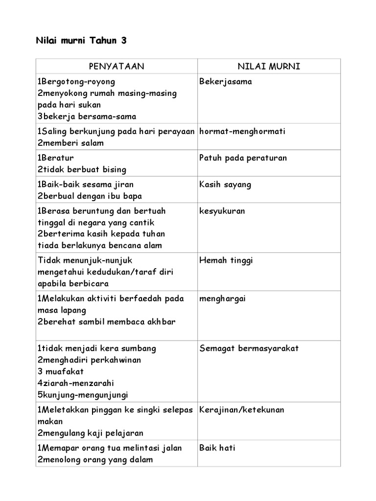 Nilai Nilai Murni Tahun 3