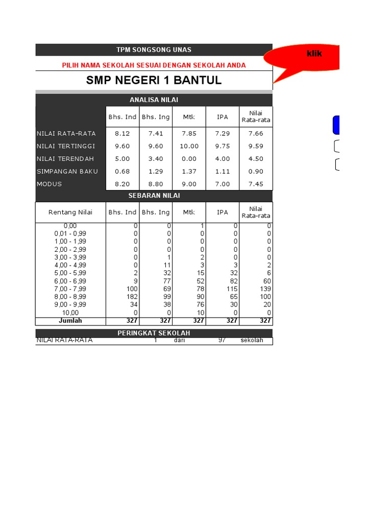 Ranking Peringkat Sekolah Kabupaten Bantul Per Mata Pelajaran