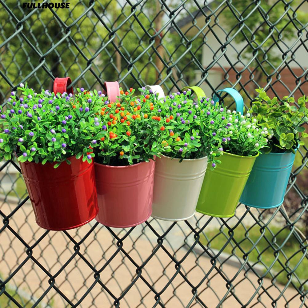 Logam Besi Menggantung Pot Bunga Vas Planter Pagar Hiasan Dinding