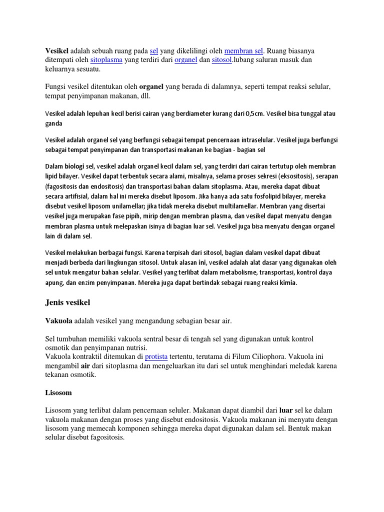 Vesikel Adalah Sebuah Ruang Pada Sel Membran Sel Sitoplasma