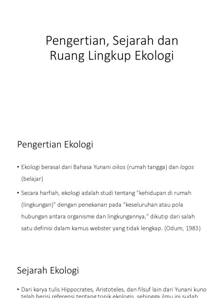Pengertian Sejarah Dan Ruang Lingkup Ekologi