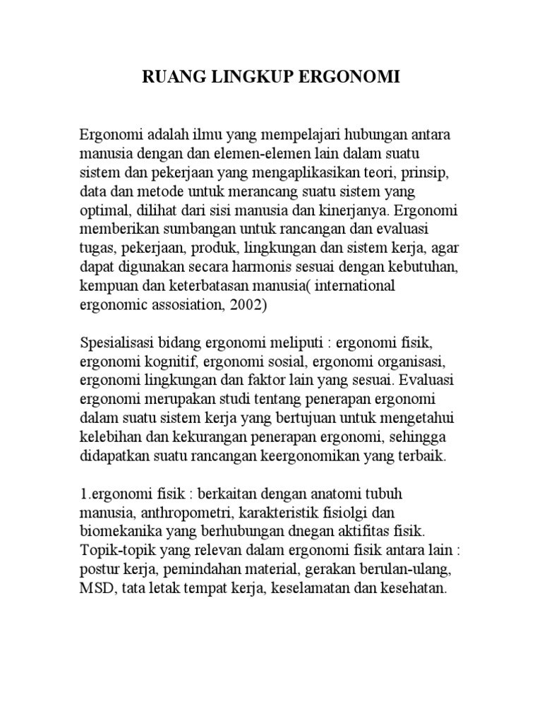 Ergonomi Pengertian Tugas Fungsi Tujuan Dan Wewenang