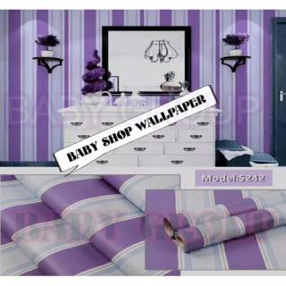 Wallpaper Dinding Murah Ruangan Tamu Kamar Garis Ungu Putih Elegan