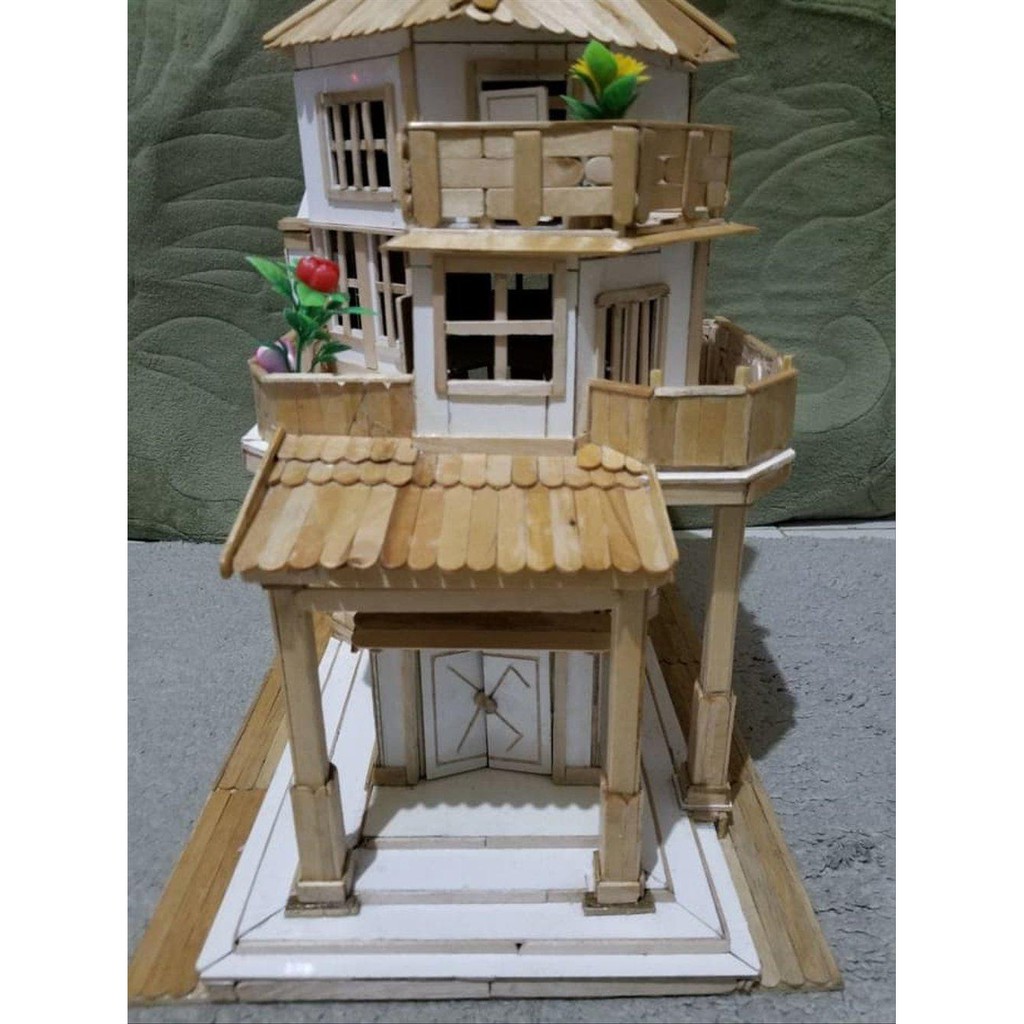Jual Pajangan Hiasan Miniatur Rumah Mewah 3 Lantai Dari Stik Es