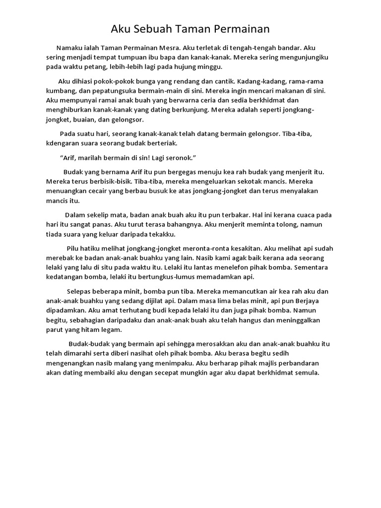 Contoh Karangan Sekolah Rendah Aku Sebuah Taman Permainan