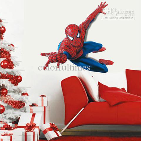 Karakter Film 3d Kartun Spiderman Stiker Dinding Untuk Kamar Anak