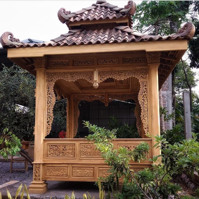 Gazebo Taman Kayu Jati Solid Saung Ukiran Tradisional Asli Jepara